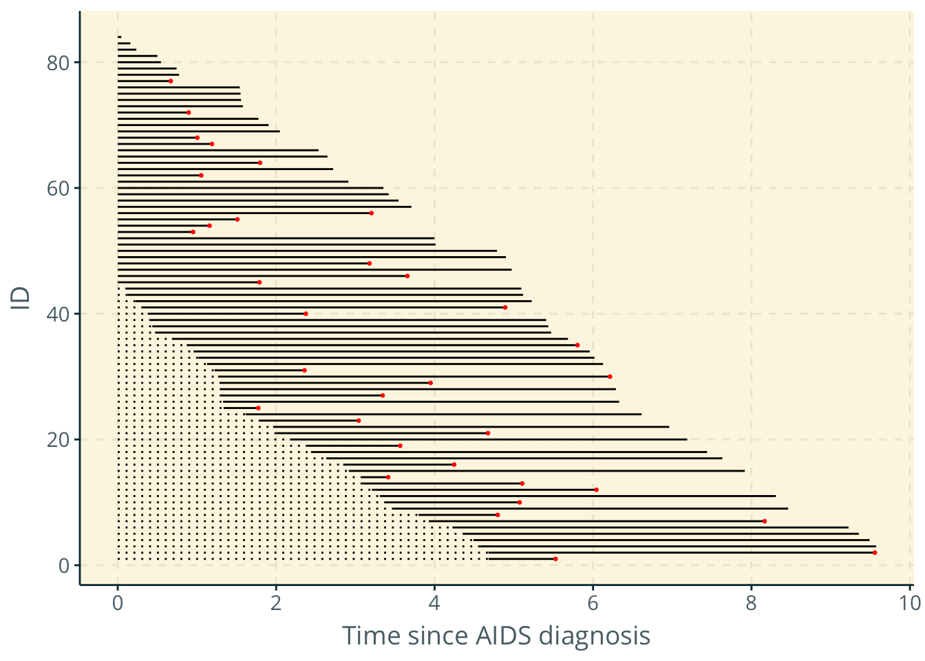 scale_x_continuous(name = "Time since AIDS diagnosis", breaks = c(0,2, 4, 6, 8, 10)) +